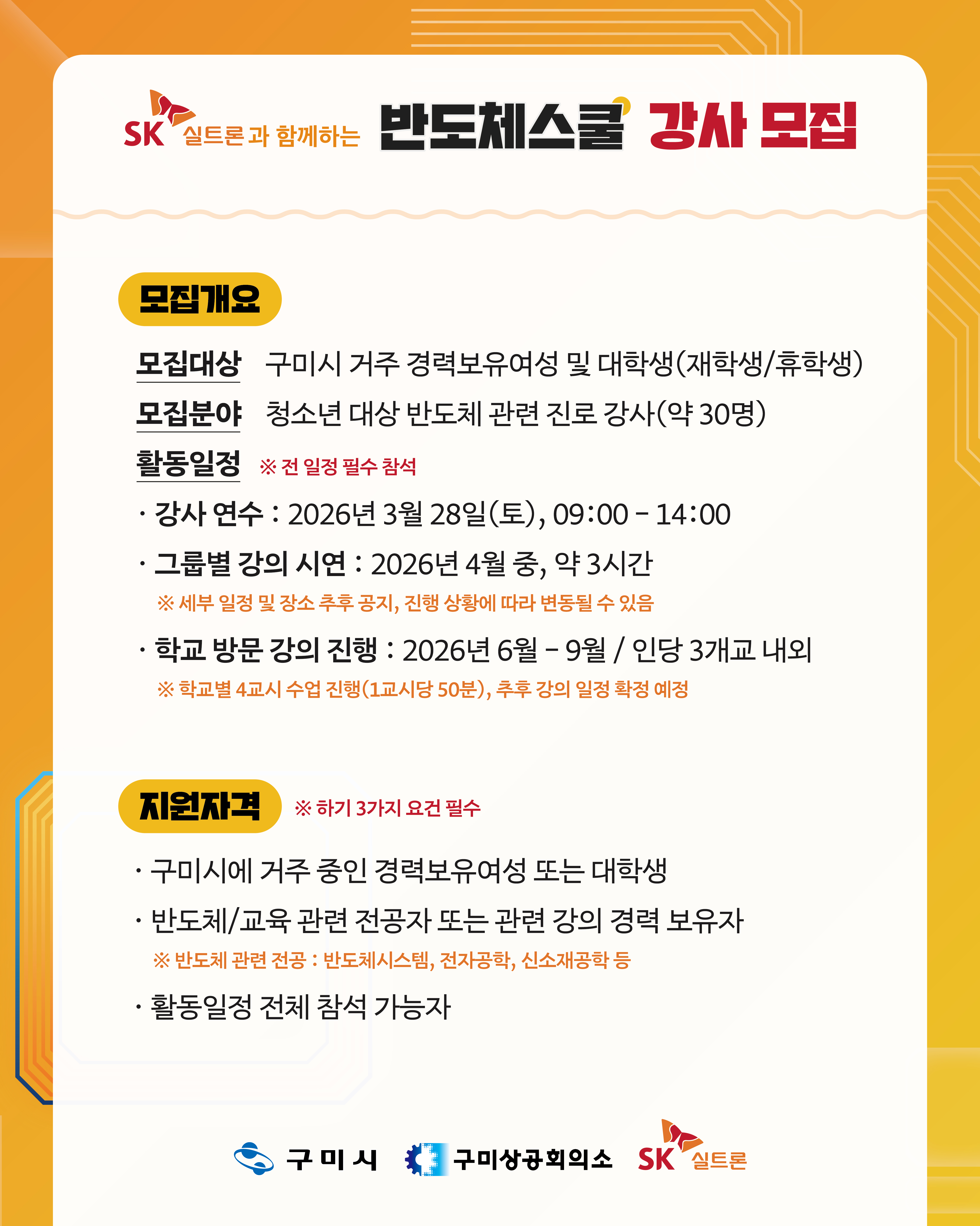 [SK실트론과 함께하는 반도체스쿨] 교육 강사 모집