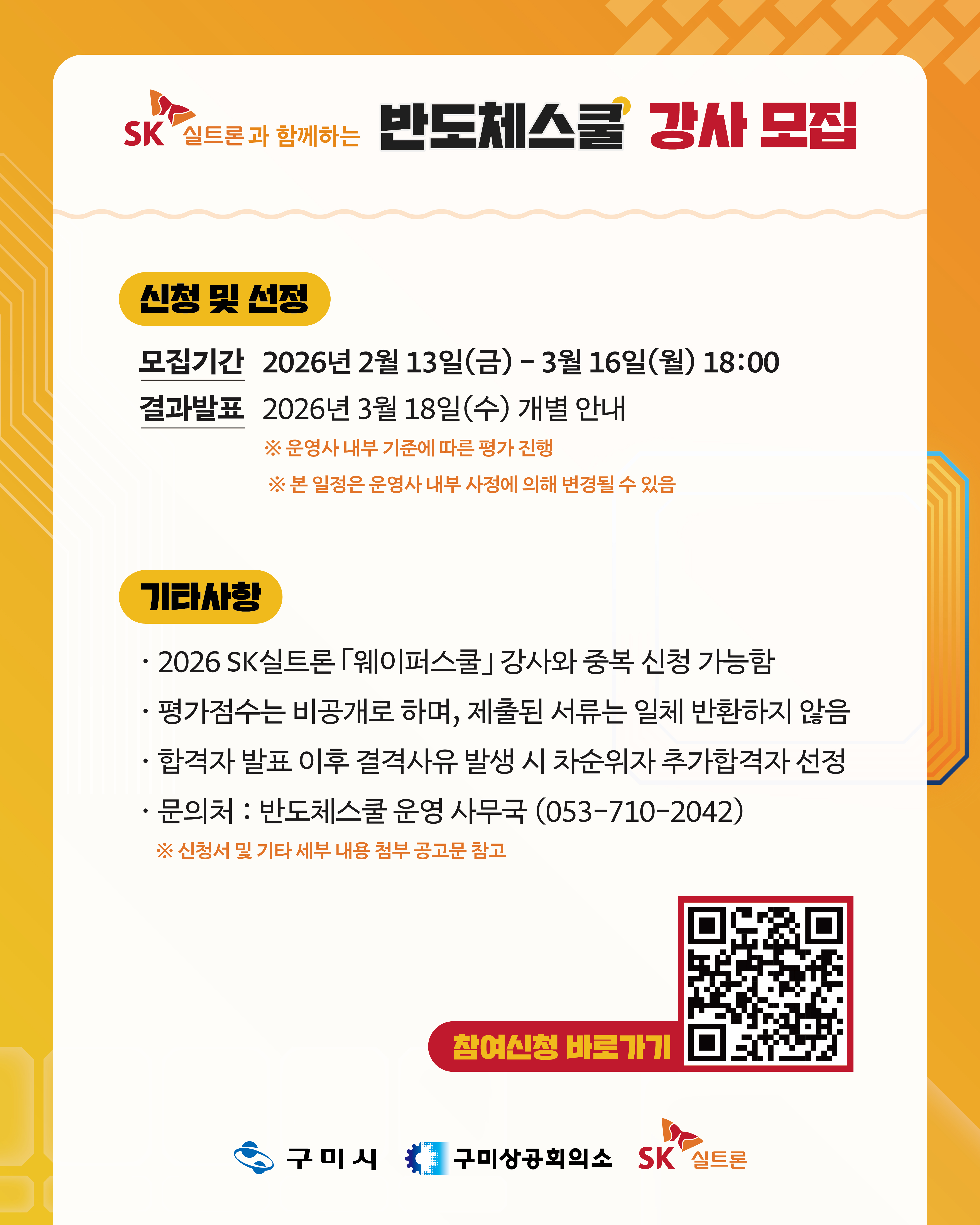 1) 2026 SK실트론 [웨이퍼스쿨] 강사 중복 신청가능