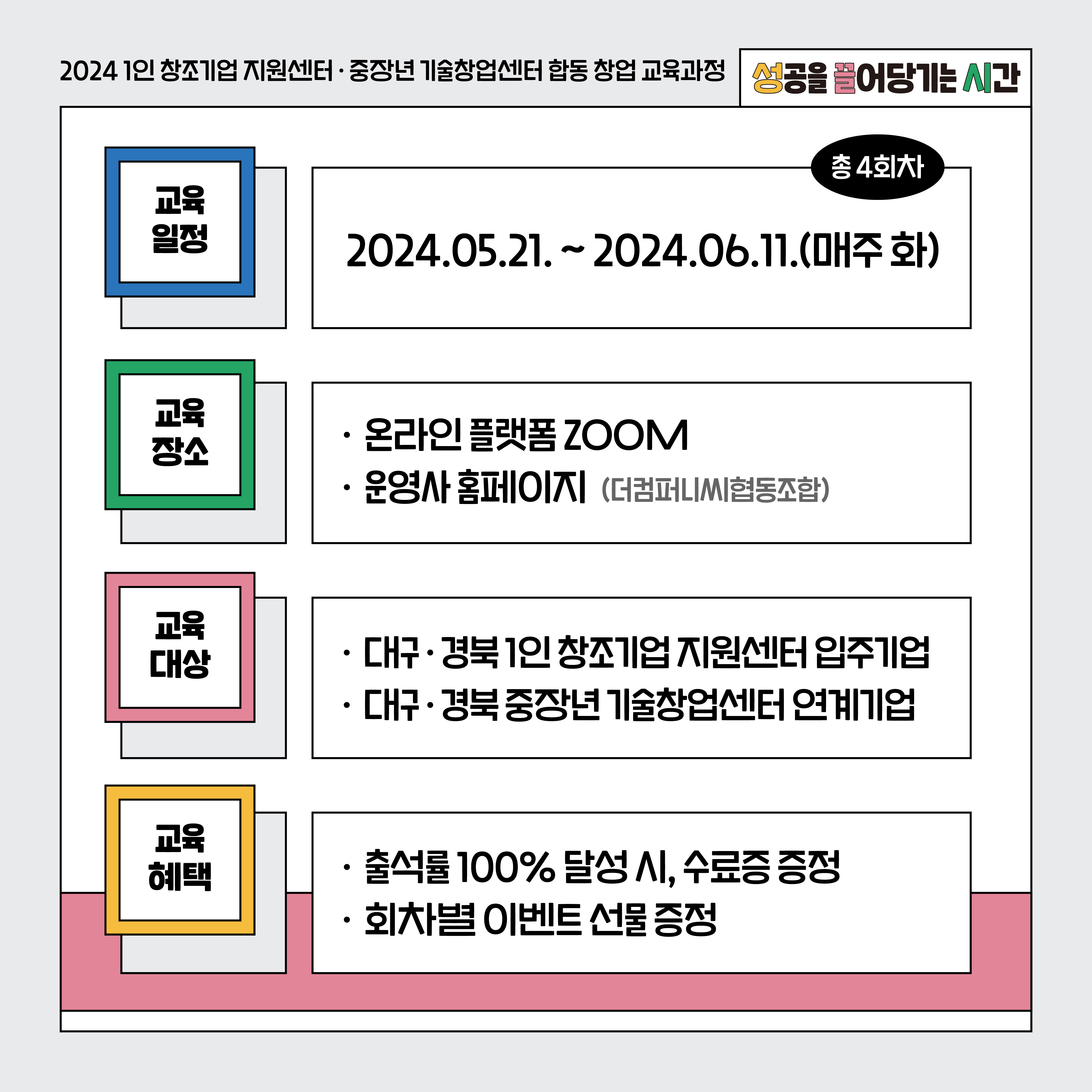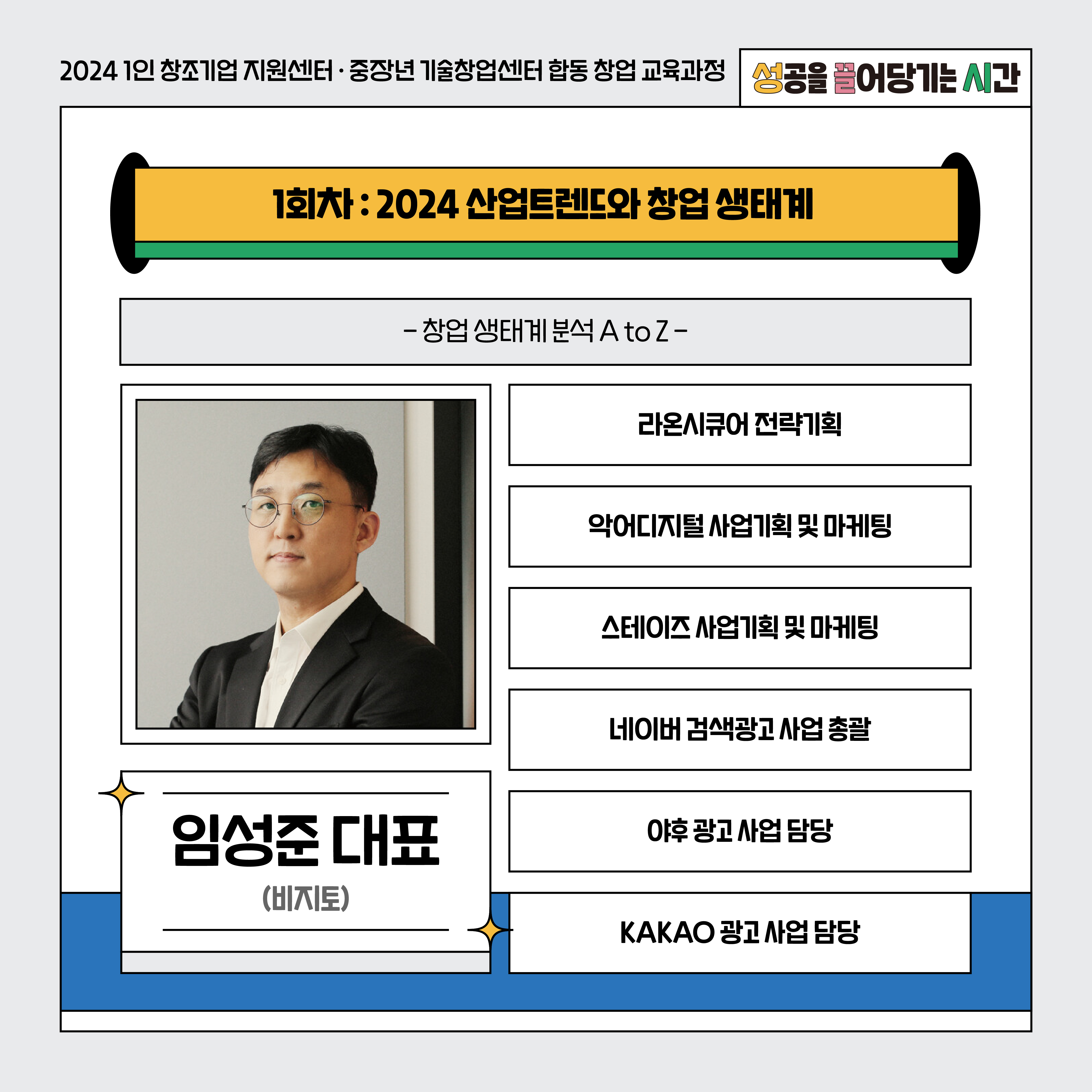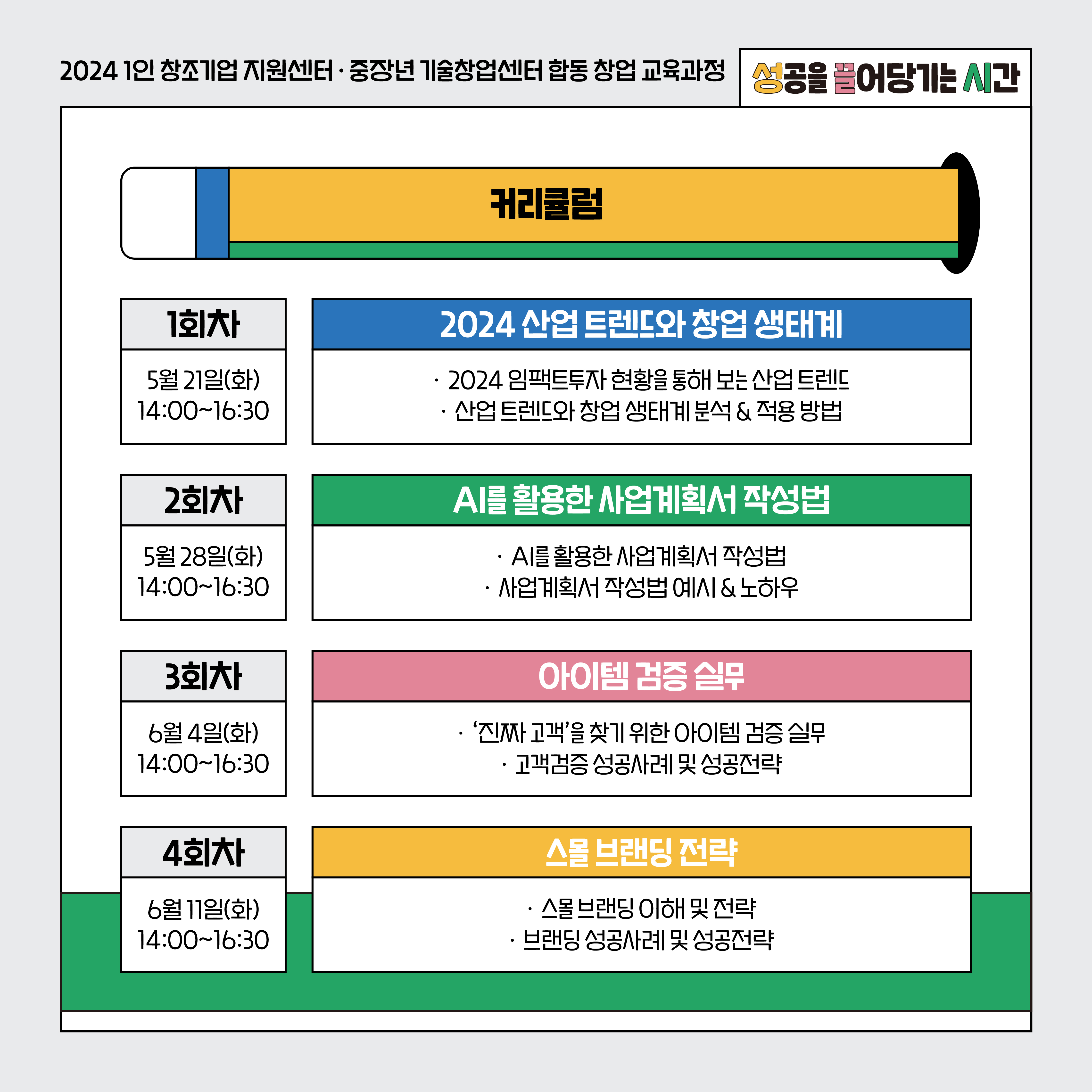 1인 창조기업과 중장년 기술창업 대표님들의 창업 역량 강화 교육이 돌아왔습니다!