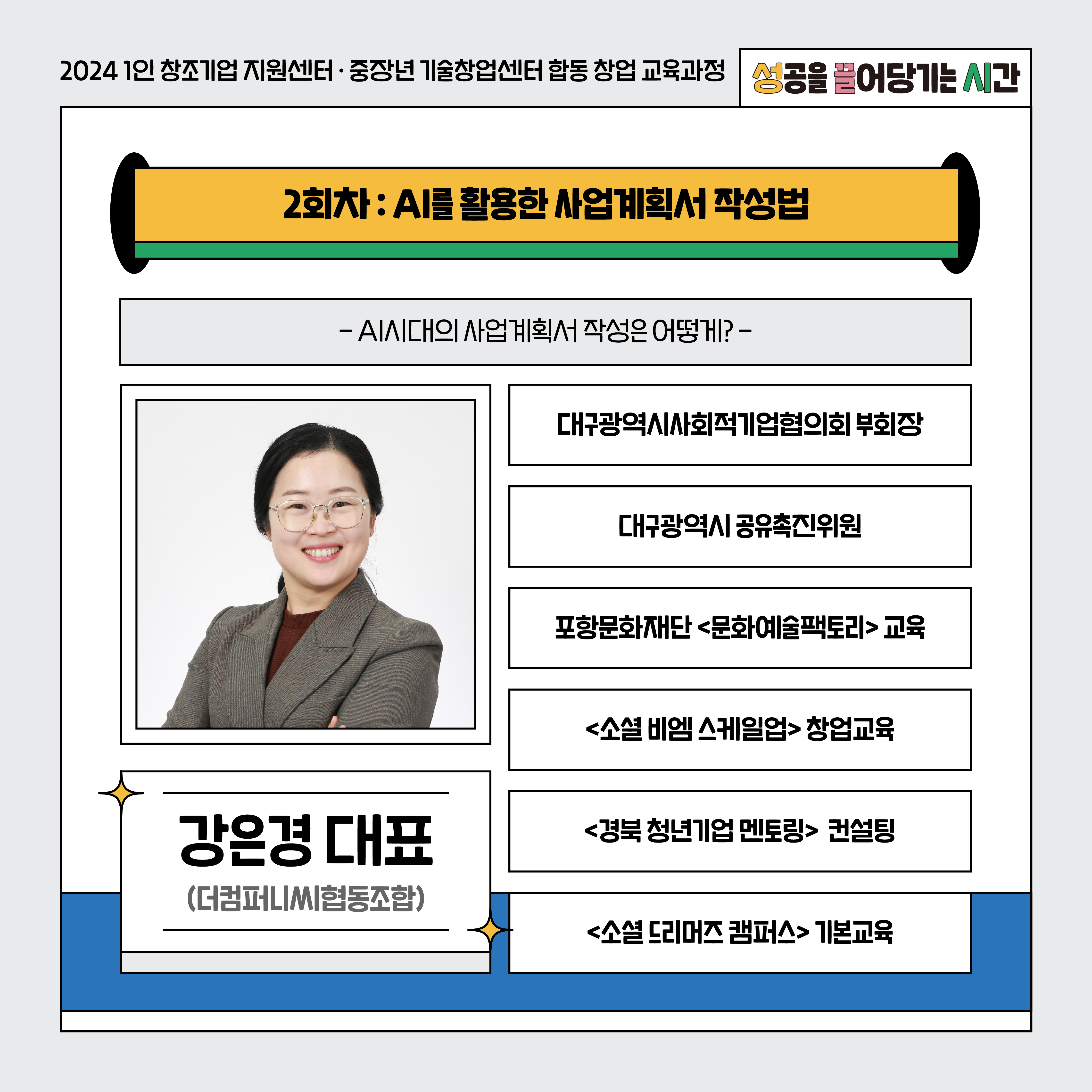 (2회차) 5월 28일(화) 14:00~16:30 ㅣ"AI활용한 사업계획서 작성법"